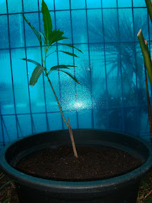 Cukup lama ketiga pohon tersebut terbengkalai karena kami belum memindahkannya kedalam pot yang lebih besar. Belum sempat membeli. Ataupun kalau sempat, pot dengan ukuran sebagaimana kami inginkan tidak tersedia di toko tanaman yang kami kunjungi. Baru hari ini ketiganya dapat dipindahkan. Itu juga bukan karena kami mendapatkan pot sesuai kemauan di toko. Namun karena ember untuk merendam pakaian yang dibeli ibuku yang kebetulan sedang merkunjung, ternyata berbahanbaku plastik daur ulang yang mengeluarkan bau tidak sedap. Jadilah penggunaan ember tersebut melenceng jauh dari tujuan asal :-D.