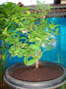 Selain itu kami juga akhirnya membeli sebatang pohon jambu air setinggi kurang lebih limapuluh sentimeter namun telah berbuah kecil-kecil. Namun meski berukuran kecil, jambu air tersebut telah merah dan telah manis rasanya.